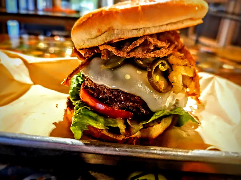 charred pineapple, provolone, pickled jalapenos with our teriyaki cream sauce served on top of a house made patty.