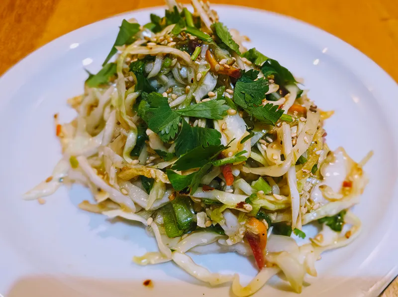 Fresh cabbage with sesame dressing, pefect for balanacing the rich flavors of Rangoon